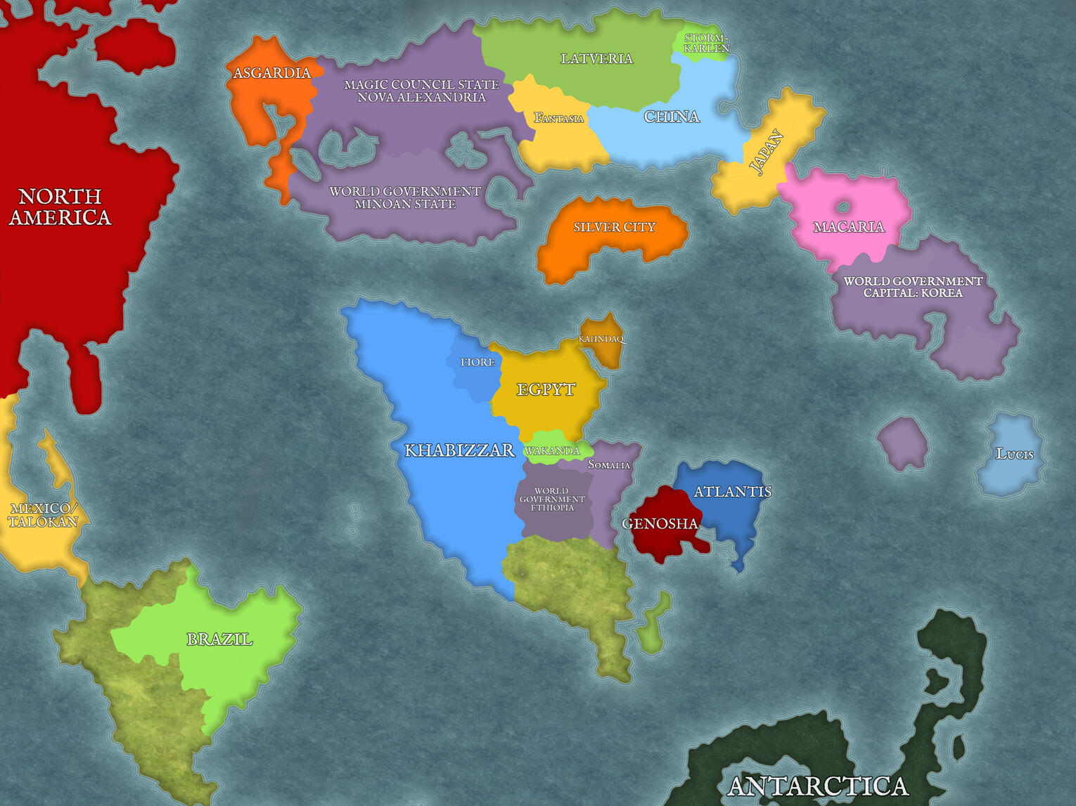 Beneath the once bustling country of Japan, a city for the wicked exists. It was named Demon City, though, after Persephone, who brought order and claimed the city, it was renamed Macaria. The land above, however, falls to Gorr the God Butcher!Minoan Kingdom: A World Government state once ruled by the benevolent King, Minos.World Magic Council: NOVA ALEXANDRIA: A World Government Branch situated in Europe, another World Government territory. It is the home of innovation, sorcery, and technology.STORMKARLEN: Not much is known about this location. But is not a territory belonging to the World Government.ATLANTIS: An island between North America and Nova Alexandria ruled by Poseidon.